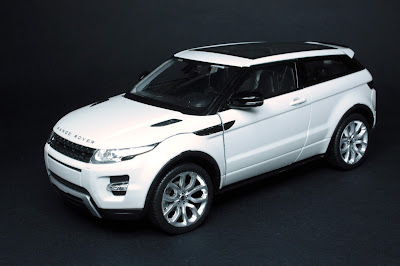 En el Evoque, Welly ha rizado un tanto el acabado, dotándole de todos los vidrios del coche incluidos los de las puertas ( en la miniatura, se incluye una herramienta para poder abrir las puertas) lo que le da